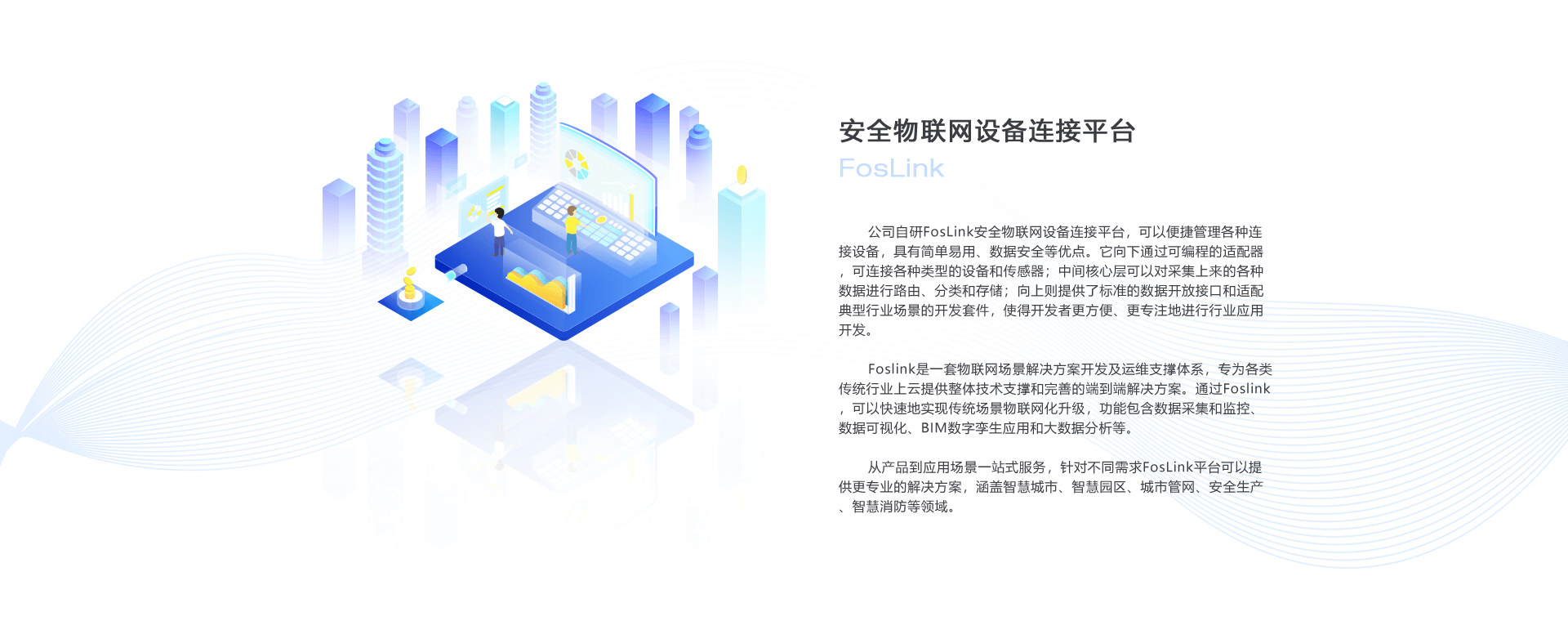 Foslink是一套物聯(lián)網(wǎng)場(chǎng)景解決方案開發(fā)及運(yùn)維支撐體系,專為各類傳統(tǒng)行業(yè)上云提供整體技術(shù)支撐和完善的端到端解決方案。通過Foslink,可以快速地實(shí)現(xiàn)傳統(tǒng)場(chǎng)景物聯(lián)網(wǎng)化升級(jí),功能包含數(shù)據(jù)采集和監(jiān)控、數(shù)據(jù)可視化、BIM數(shù)字孿生應(yīng)用和大數(shù)據(jù)分析等。